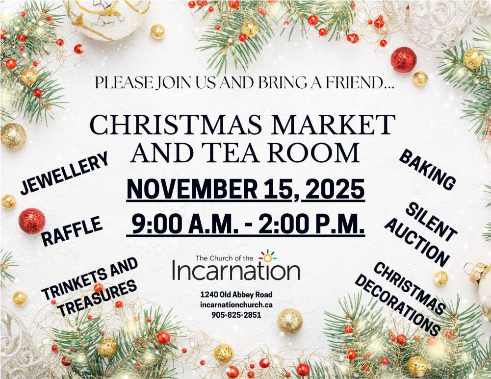 With a dozen fabulous vendors, many traditional tables by Incarnation like baking, trinkets and treasures, raffle and silent auction, and the terrific offerings in the tea room, you’ll want to set aside the time to do some Christmas shopping and then treat yourself to a sweet or savoury break!