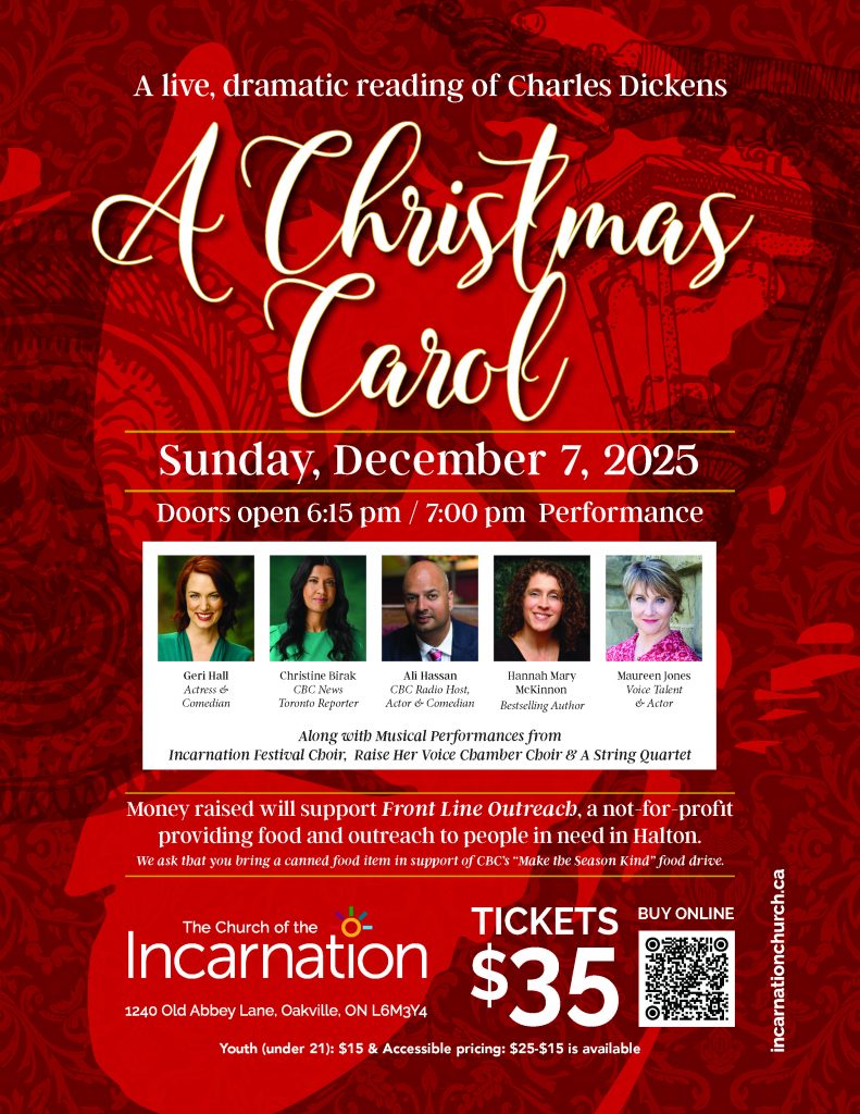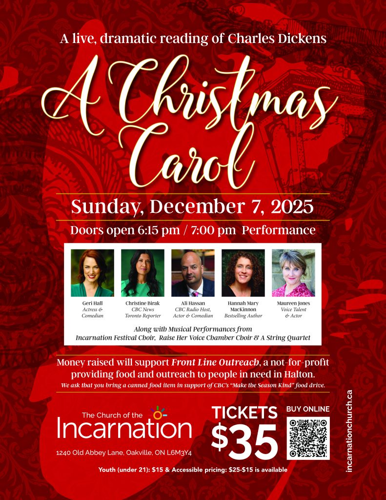 Please join us for an entertaining evening featuring some of the most popular CBC Radio and TV personalities along with Canadian actors reading Charles Dickens’ classic, A Christmas Carol! You can also purchase tickets in-person while enjoying the Christmas Market THIS SATURDAY!