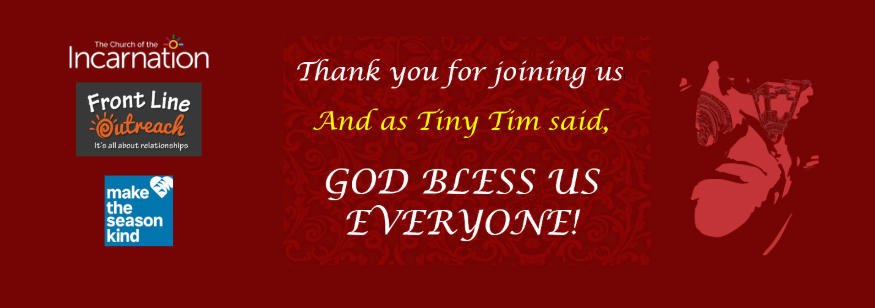 TO EVERYONE WHO HELPED MAKE OUR 2025 PRESENTATION OF DICKENS’ A CHRISTMAS CAROL A SUCCESS, THANK YOU! On behalf of FRONT LINE OUTREACH, this year’s local organization receiving the financial proceeds of the event along with the CBC’S Make the Season Kind, receiving the donated food from the evening, THANK YOU! In whichever way you were able to support our event, you made a difference this Advent! THANK YOU!